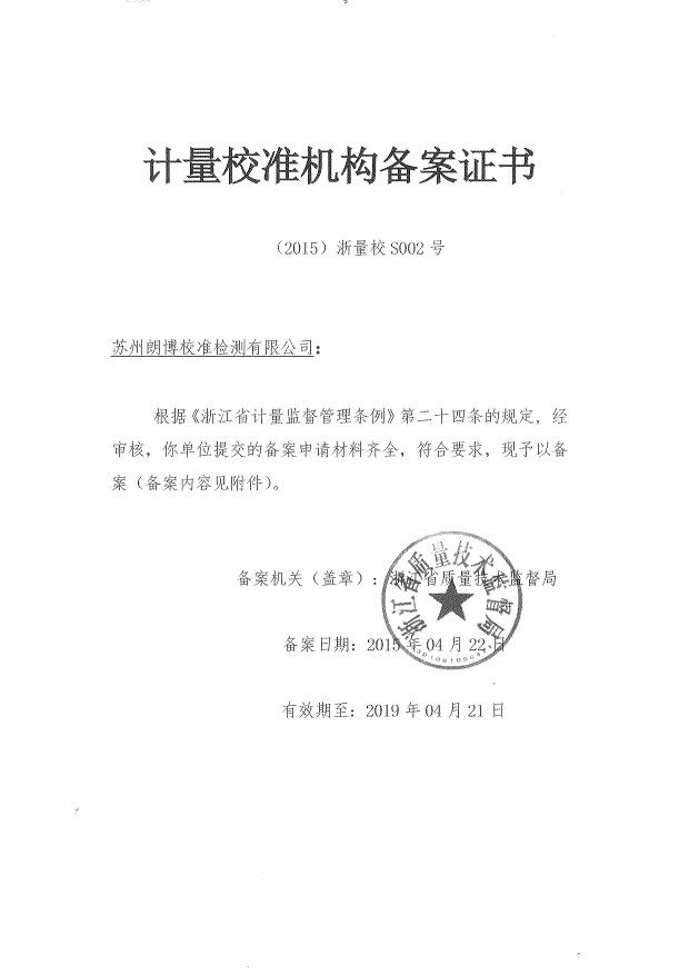 寧波朗博計量檢測有限公司是寧波計量檢測、寧波儀器檢測、寧波儀器校準、寧波計量檢測、寧波儀器校正、寧波儀器計量校驗的計量校準檢測技術(shù)服務(wù)公司。寧波朗博計量檢測有限公司屬于朗搏校準檢測集團公司,集團公司另外下轄蘇州朗博校準檢測有限公司和北京朗博校準檢測有限公司,另外在南京、揚州、南通、廣州東莞、山東濰坊、安徽合肥、越南北寧等地設(shè)置辦事機構(gòu)。朗博校準檢測集團通過中國合格評定國家認可委員會(CNAS)及國防科技工業(yè)實驗室認可委員會(DILAC)認可與授權(quán),專業(yè)從事計量校準、檢測(包含軍用設(shè)備檢測)和維修服務(wù)的綜合實驗室,可以開展900多個項目的校準和檢測技術(shù)服務(wù),所出具的校準證書及檢測報告獲得國際實驗室認可合作組織多邊協(xié)議(ILAC-MRA)成員中48個國家和地區(qū)的認可。校準檢測,實驗室建有幾何量、熱工、力學(xué)、電磁、無線電、時間頻率、振動、聲學(xué)、光學(xué)、理化等專業(yè)校準實驗室。實驗室嚴格按照國家相關(guān)檢定規(guī)程、校準規(guī)范、國家標準或儀器說明書技術(shù)指標的要求等進行全面的校準檢測;實驗室的校準檢測工作完全滿足ISO/IEC17025和ISO9000的要求,實驗室所出具的第三方公正的校準證書及檢測報告獲得國際實驗室認可合作組織多邊協(xié)議(ILAC-MRA)成員中48個國家和地區(qū)的認可。